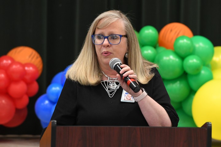 Thomas Jefferson Elementary | Bentonville, AR | Apr 27, 2022Let's get this party started! Thomas Jefferson Elementary School Principal Stacee Freeman kicks off the assembly.