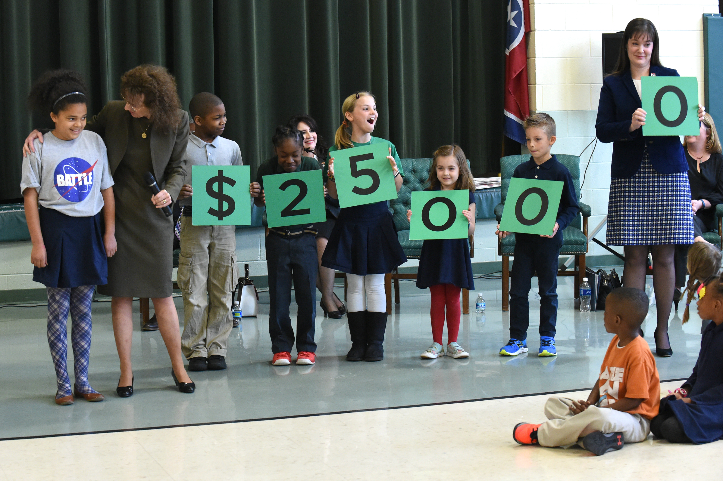 Battle Academy | Chattanooga, TN | Mar 07, 2017"Commissioner McQueen, can we find one more zero?" At the prompting of Dr. Jane Foley, senior vice president of the Milken Educator Awards, Dr. Candice McQueen, Tennessee's education commissioner, holds up the final zero, bringing the total amount of the cash prize to a whopping $25,000—and the crowd goes wild! Which Battle Academy teacher is about to win the Award?