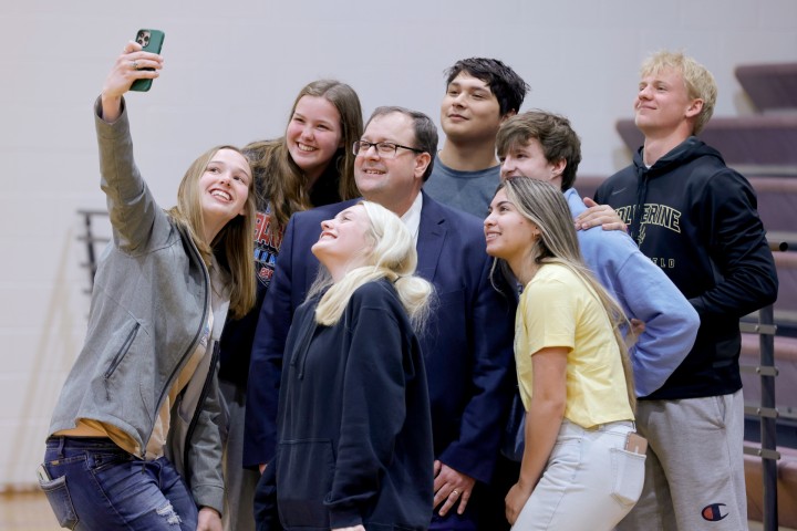 Lyons-Decatur Northeast High School | Lyons, NE | Apr 28, 2022LDNE students gather for a selfie with Nebraska Commissioner of Education Dr. Matthew L. Blomstedt.