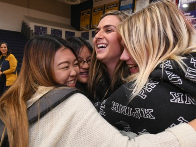 Sunnyside High School | Fresno, CA | Dec 10, 2019Back in the studio that serves as her classroom, Katie McQuone celebrates with students after her Milken Award surprise. Her students know what it's like to be recognized for their work, too: All students submit videos to competitions like Picture of the Valley, Slick Rock and the National Student Production Awards, also known as the “high school Emmys.” Many of Katie's student productions have won county and regional awards, including a regional Emmy for a documentary one student produced about her parents’ lives as migrant farm workers.