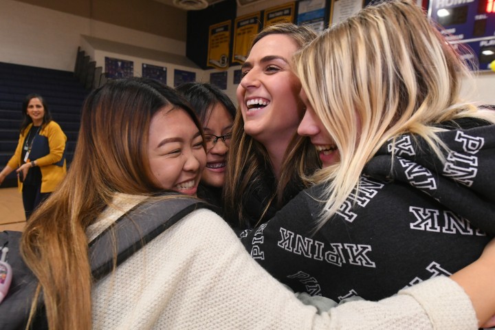 Sunnyside High School | Fresno, CA | Dec 10, 2019Students envelop Katie McQuone in a congratulatory group hug. Students collect in Katie's classroom before school, at lunch and after the school day ends. In a large school where many students lack stability at home, her classroom is a sanctuary.