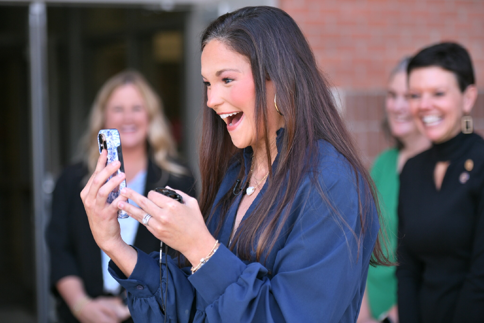 Kayla Saxton calls her parents and husband to let them know the good news: she's just received a Milken Educator Award and $25,000!