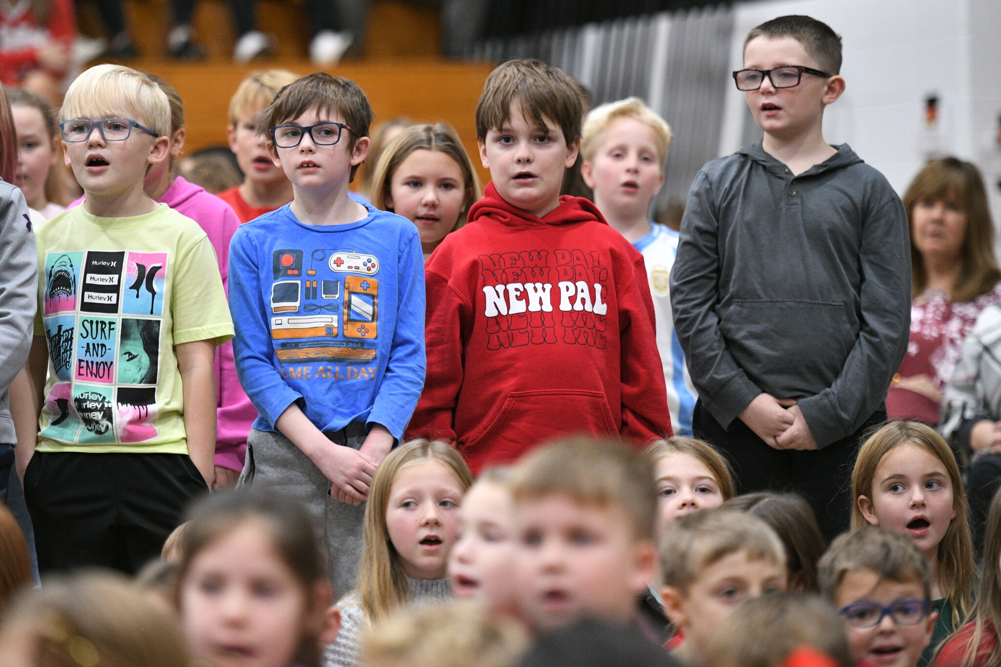 New Palestine Elementary School | New Palestine, IN | Dec 17, 2025New Palestine Elementary School third and fourth grade students perform a song to kick of the assembly.
