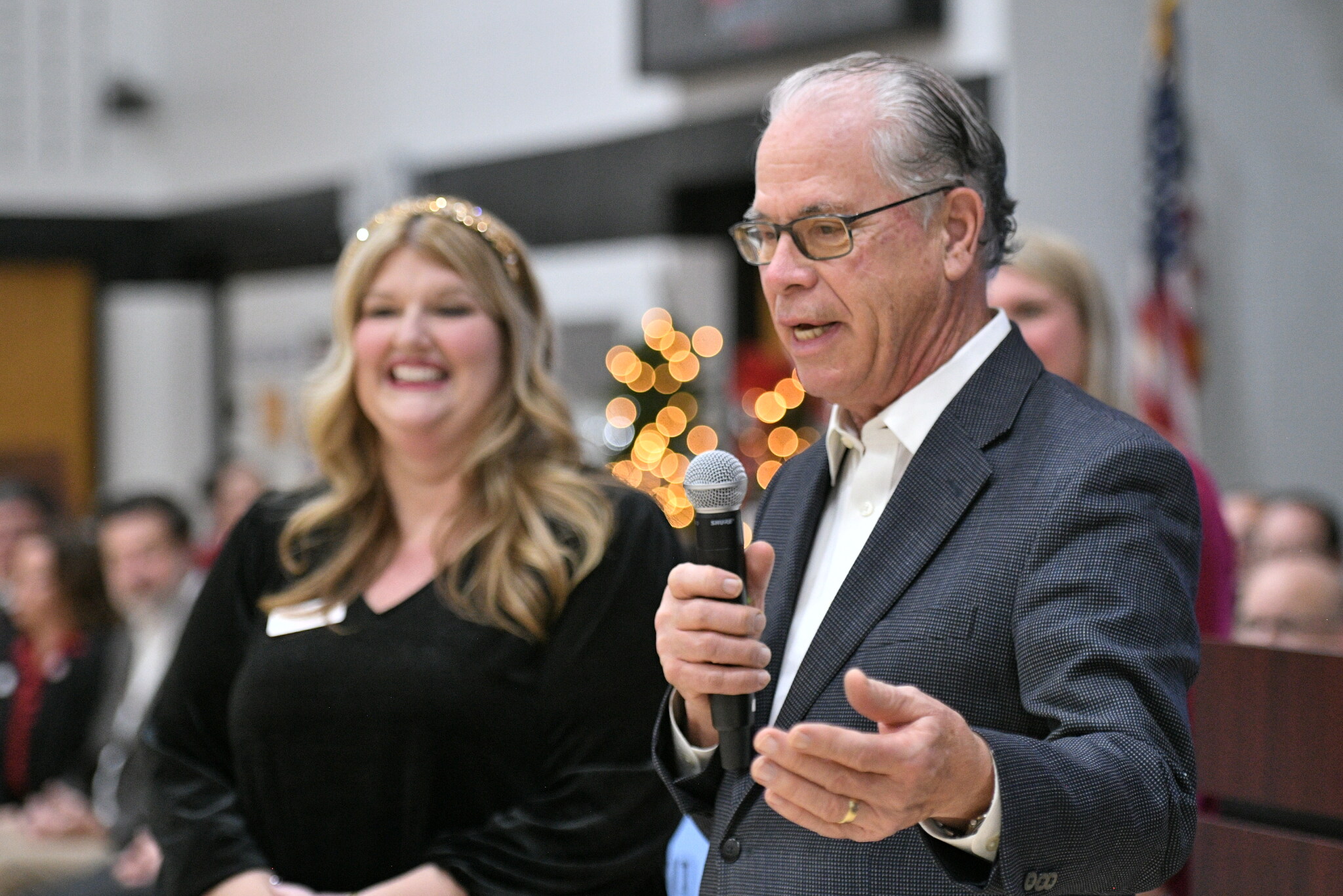 New Palestine Elementary School | New Palestine, IN | Dec 17, 2025Indiana Governor Mike Braun encourages Kayleigh Fosnow (IN '25).