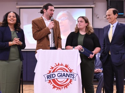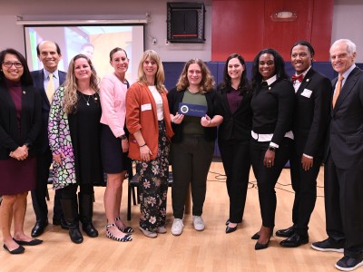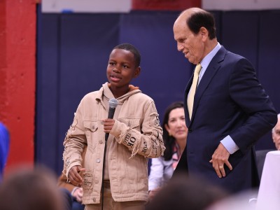 Excitement is in the air at BASIS Washington, D.C.: State Superintendent of Education Dr. Christina Grant is visiting for an all-school assembly. But there's another reason for the festivities, which comes to light when special guest Mike Milken, president and co-founder of the Milken Family Foundation, surprises Senior Curriculum Coordinator and Instructional Coach Kelly Maranchuck with the District's Milken Educator Award and a giant $25,000 check. Click through the photos below to see the event unfold. Maranchuck is the 2,946th Milken Educator recognized on the journey to the milestone 3,000th Milken Award announcement.