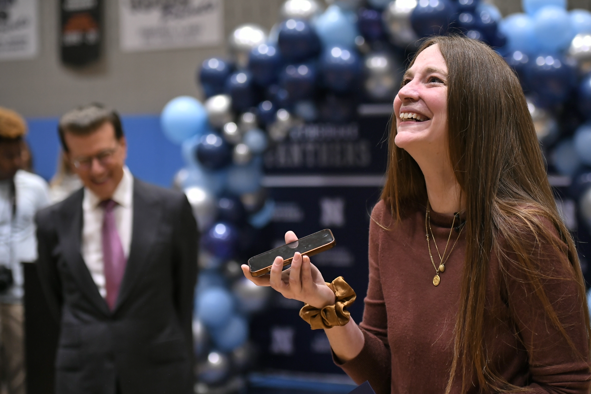 Northshore High School | Slidell, LA | Feb 07, 2024With Milken Educator Awards Founder Lowell Milken standing by and video cameras capturing every word, Kelly Ryan calls her father, Mark, to share the news about her $25,000 Milken Award surprise. "I have a check in my hand right now and I'm shaking," she tells him. "That's so great, congratulations," he replies. "I'm sure it's going to be on the St. Tammany Facebook page pretty soon!"