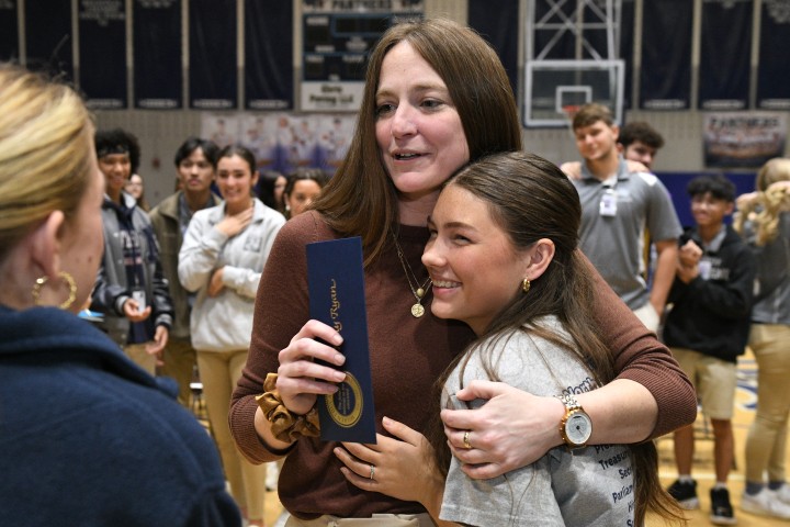 Northshore High School | Slidell, LA | Feb 07, 2024Students continue to shower science teacher Kelly Ryan with congratulatory hugs after her surprise Milken Educator Award notification.