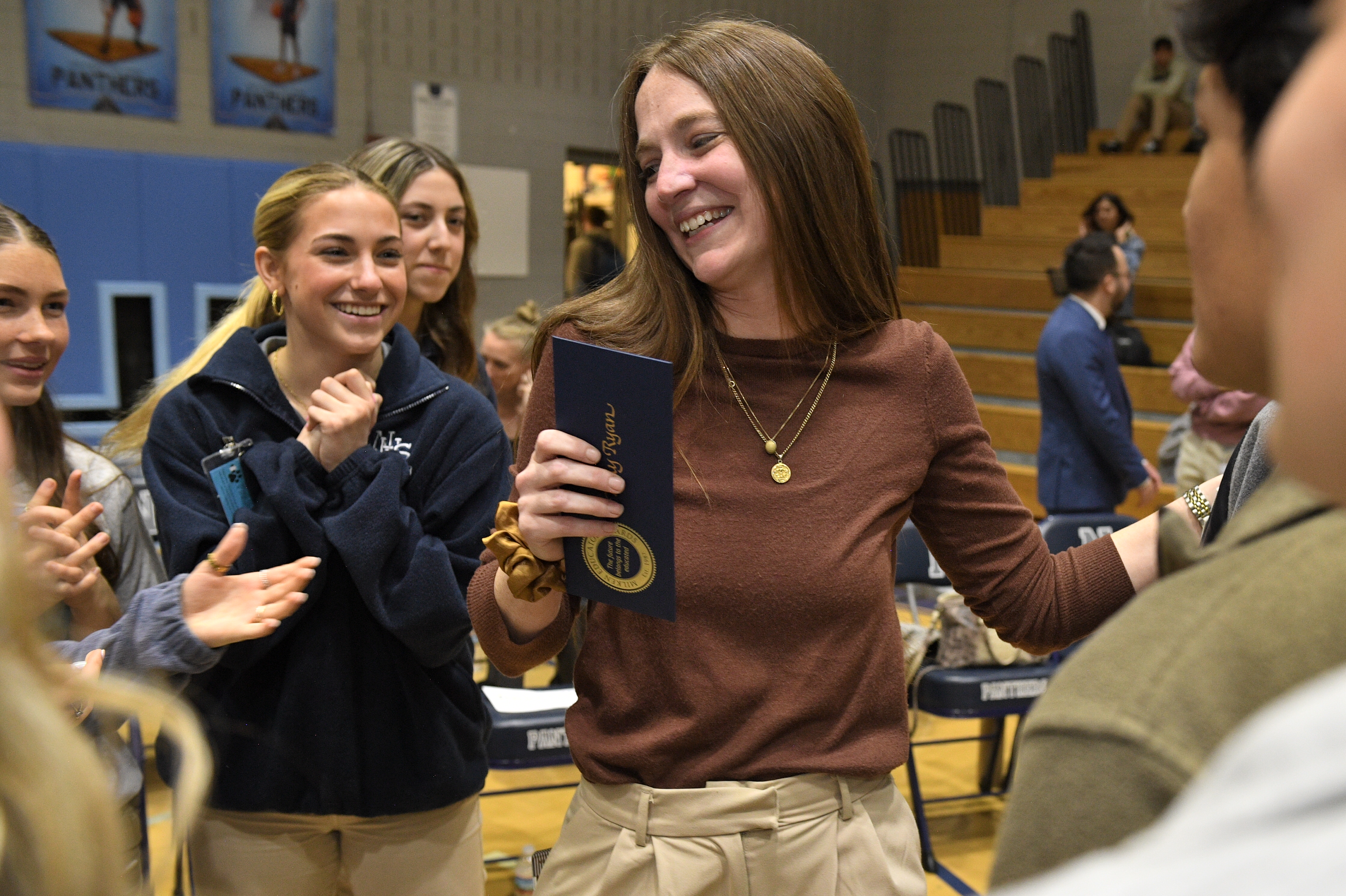 Northshore High School | Slidell, LA | Feb 07, 2024Excited students gather around to congratulate their teacher Kelly Ryan on her Milken Educator Award.