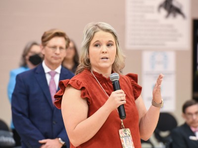 Discovery Middle School | Madison, AL | Mar 04, 2022Dr. Jane Foley, senior vice president of the Milken Educator Awards, tells the audience that one of the best teachers in the country is right here at Discovery Middle School—and that teacher is about to receive an important national honor.