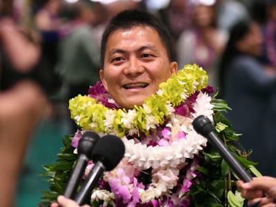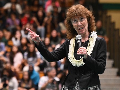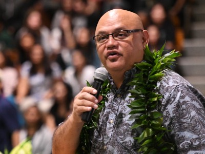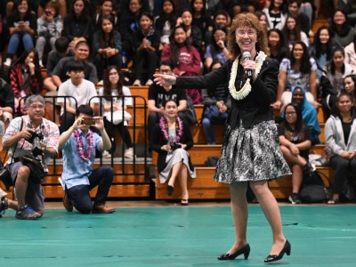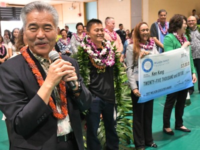 Aiea High School | Aiea, HI | Feb 05, 2018Veteran Milken Educators welcome Ken Kang to their ohana (family) with the traditional Hawaiian shaka sign.
