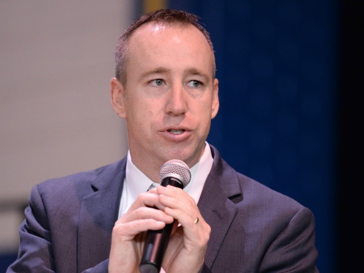 Lexington Middle School | Lexington, SC | Feb 09, 2016Lexington Middle School Principal Ryan T. Pool greets the students, staff and guests in the crowded gym as the morning assembly begins.