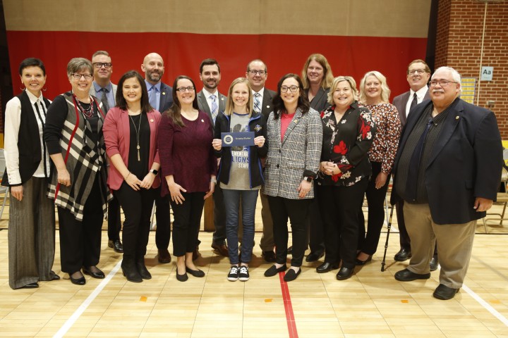 Logan Elementary School | Topeka, KS | Jan 18, 2023Veteran Milken Educators gather around Kristine Becker (KS '22) to welcome her to the Milken Educator Network, a group of 2,900-plus leaders in the profession.