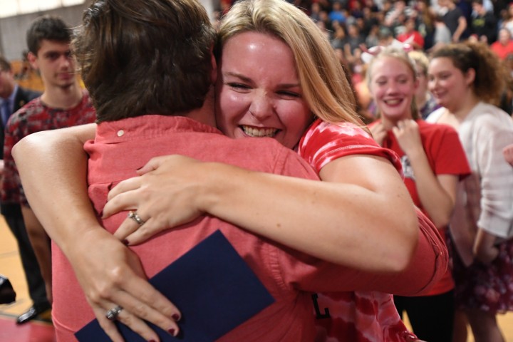Coventry High School | Coventry, RI | Oct 26, 2017Students and staff line up to embrace Lauren Hopkins at her surprise Milken Educator Award notification, including senior Ray Thibeault. "Congratulations to the best English teacher I've ever had," Thibeault posted on Twitter.