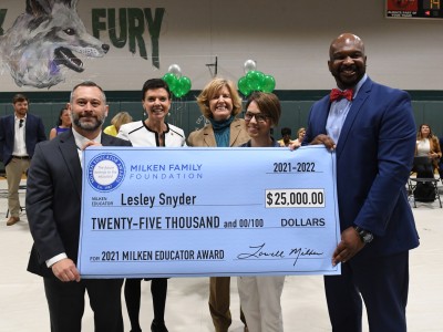 Dutch Fork Middle School | Irmo, SC | Apr 06, 2022It's Lesley Snyder's turn to address the students, colleagues and guests who just witnessed her Milken Educator Award surprise.