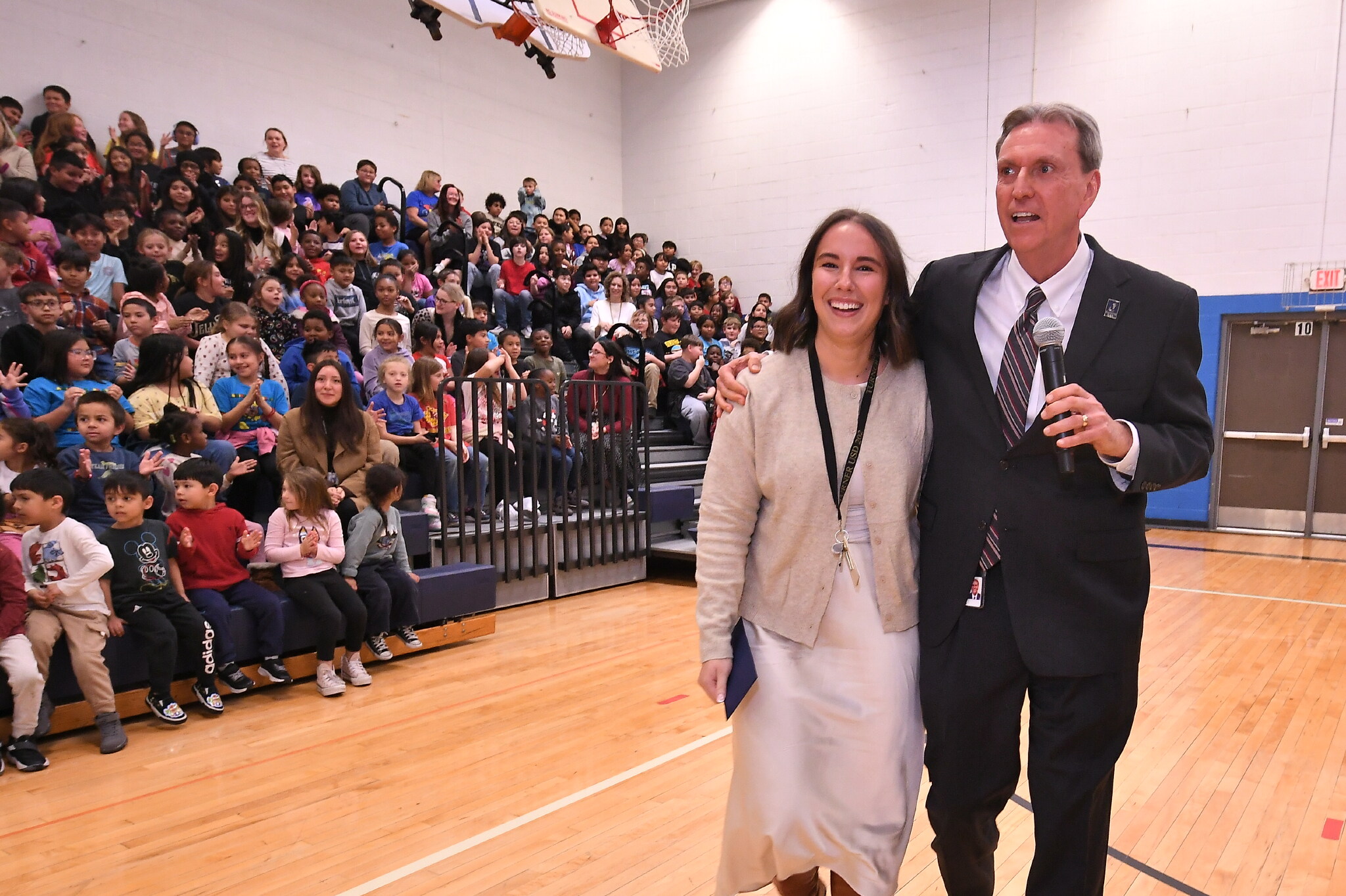 Turner Elementary School | Kansas City, KS | Dec 04, 2025Kansas Commissioner of Education Dr. Randy Watson congratulates Lexcee Oddo as students chant her name.