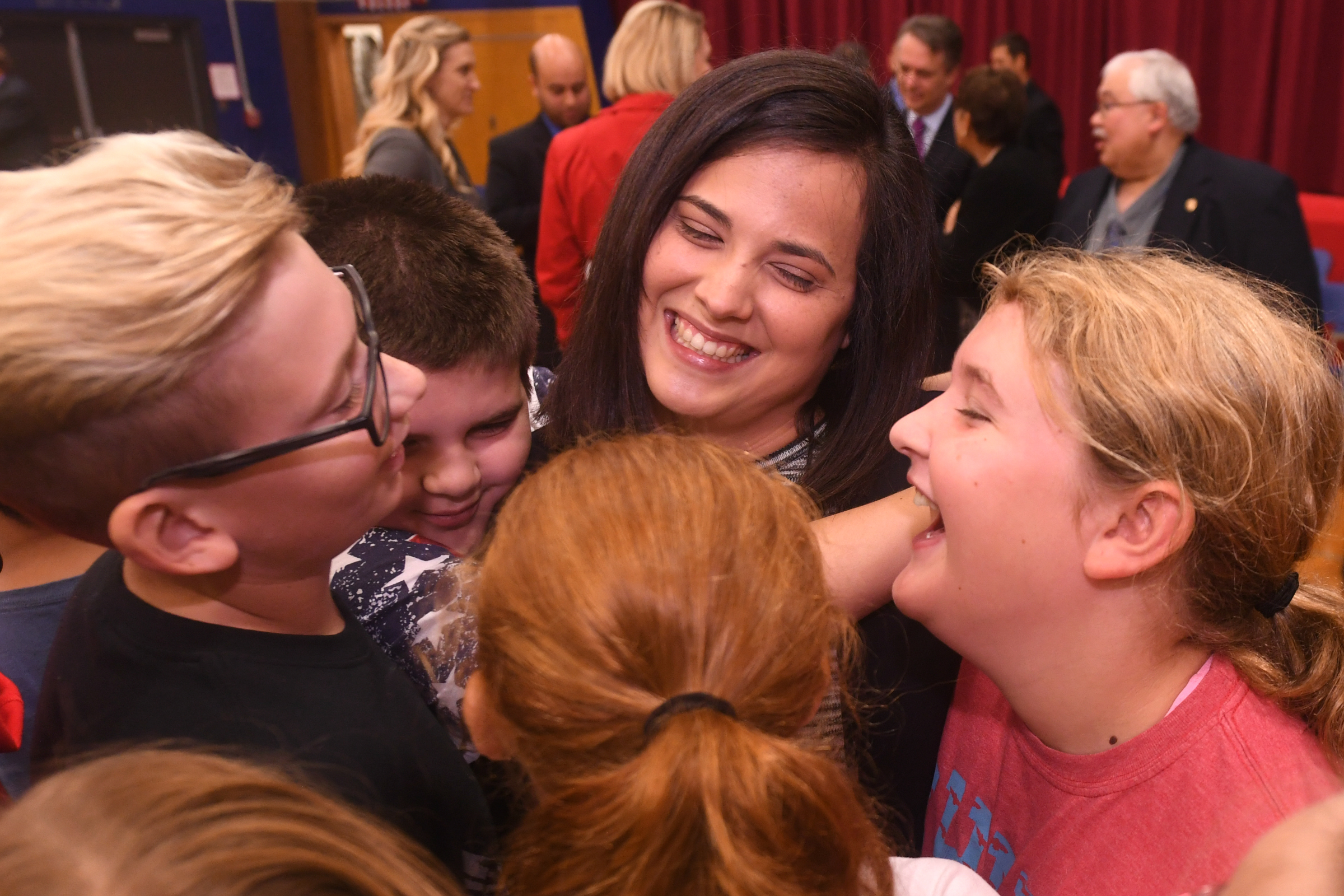 Berryton Elementary School | Berryton, KS | Oct 12, 2018Proud students swarm fifth-grade teacher Linda Dishman for a congratulatory hug after her surprise Milken Educator Award notification. Quiet, calm and poised, Dishman builds up her students with positive words and encouragement. She tutors students after school and over the summer and coaches intramural volleyball, basketball and track. During Dishman’s first year of teaching, a shy student asked her to be her 5K “running buddy” for Girls on the Run, a program she embraced and has coached ever since.