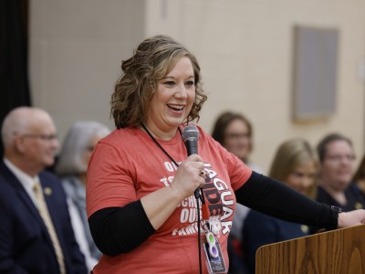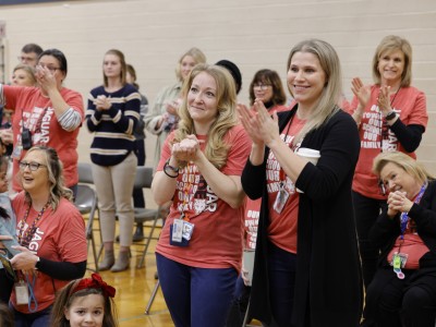 Jefferson Elementary School | Omaha, NE | Jan 20, 2023After the assembly, veteran Milken Educators gather to celebrate Lisa Moody, the newest member of Nebraska's Milken Educator Network.