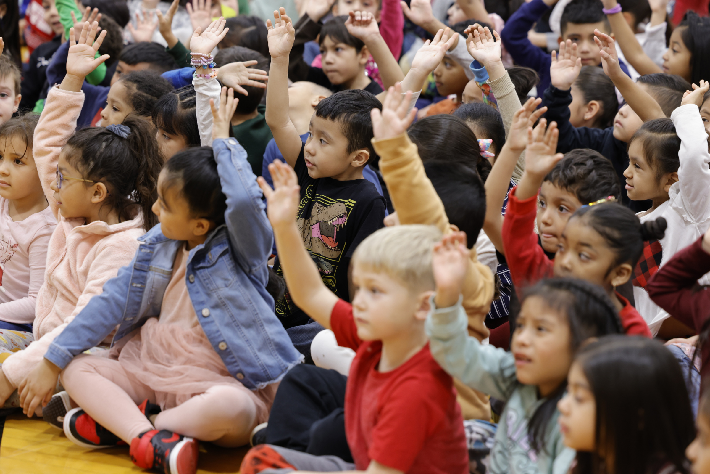 Jefferson Elementary School | Omaha, NE | Jan 20, 2023Students pay close attention as they realize that one of their teachers is about to receive a Milken Educator Award. Who helps students learn every day? Every hand goes up to give the answer — our teachers, of course!