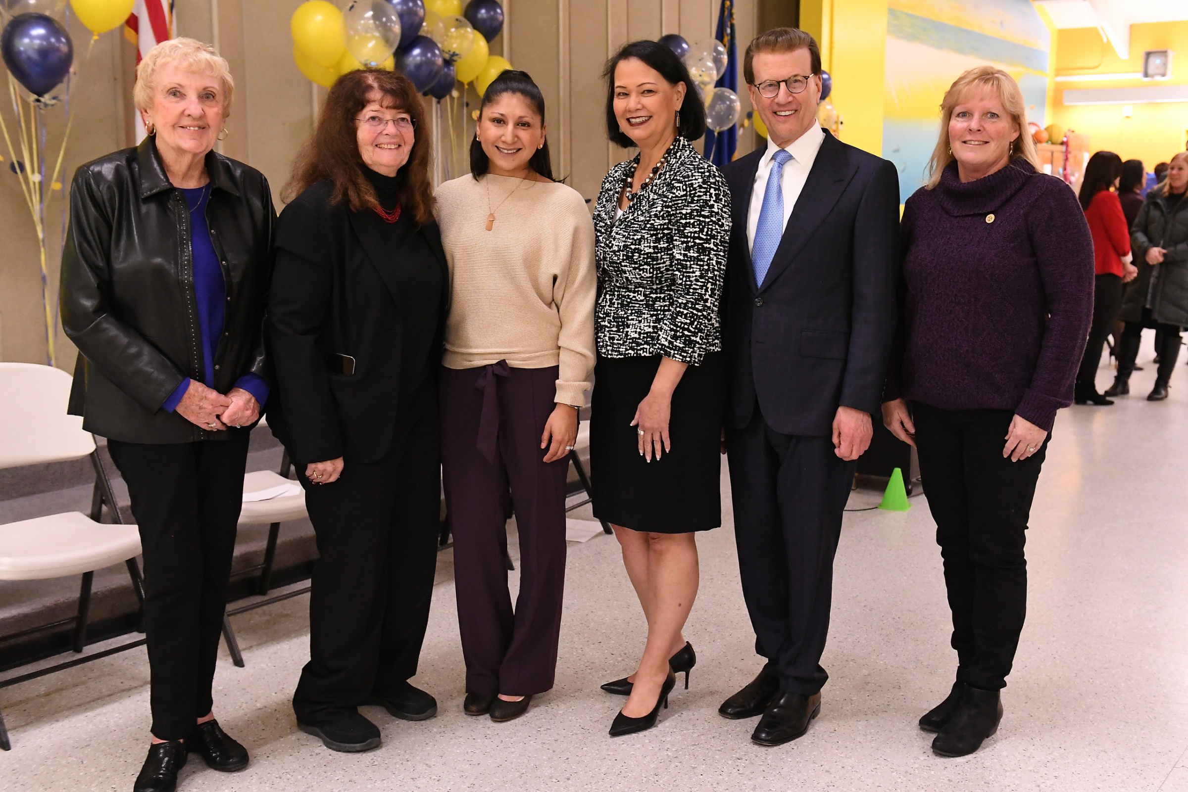 From left, Patricia Rowe (NV '89); Francey Dennis Kelley (NV '89); recipient Liz Barnum (NV '22); Nevada Superintendent of Public Instruction Jhone M. Ebert; Lowell Milken, founder of the Milken Educator Awards; and Julie Reid (NV '03).