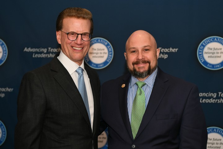 In this photo: Lowell Milken , Michael Zaba (CT '18)All photos should be credited to "Milken Family Foundation" unless otherwise noted.