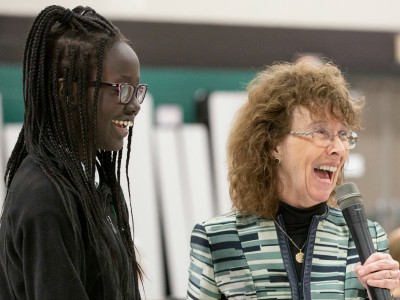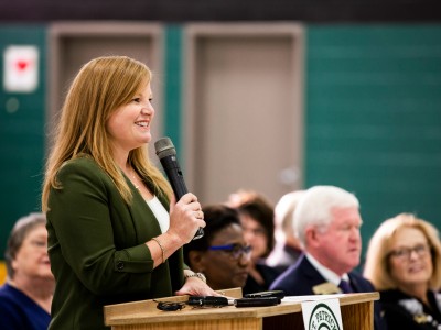 St. Patrick Catholic School | Lincoln, NE | Oct 15, 2019Veteran Milken Educator Roger Kassebaum (NE '97) shares some thoughts about what it means to be a Milken Educator. Looking on: recipient Lyndsay Hartmann (NE '19, left) and Linda Sarver (MO '03).