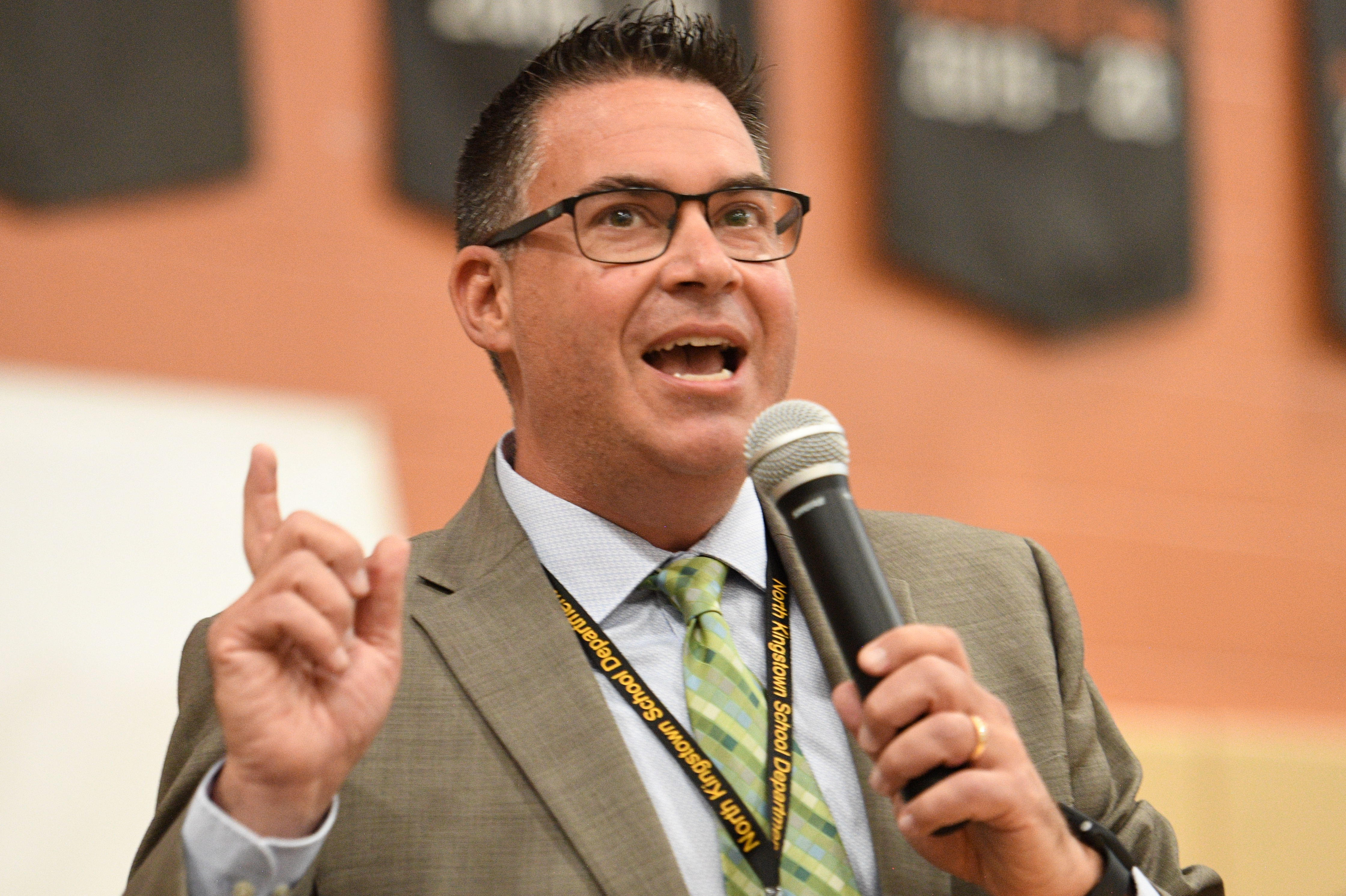 North Kingstown High School | North Kingstown, RI | Oct 10, 2023North Kingstown School Department Superintendent Dr. Kenneth A. Duva greets the students, staff and guests gathered for the special event.