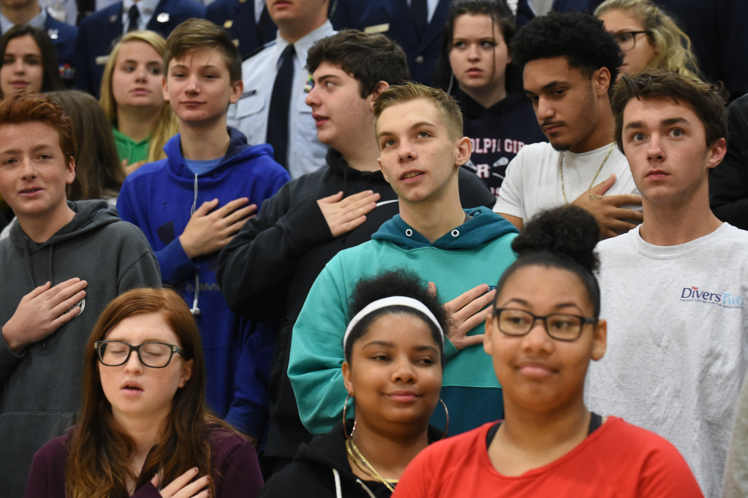 Brick Township Memorial High School | Brick, NJ | Nov 02, 2017Students recite the Pledge of Allegiance as the special event gets underway.