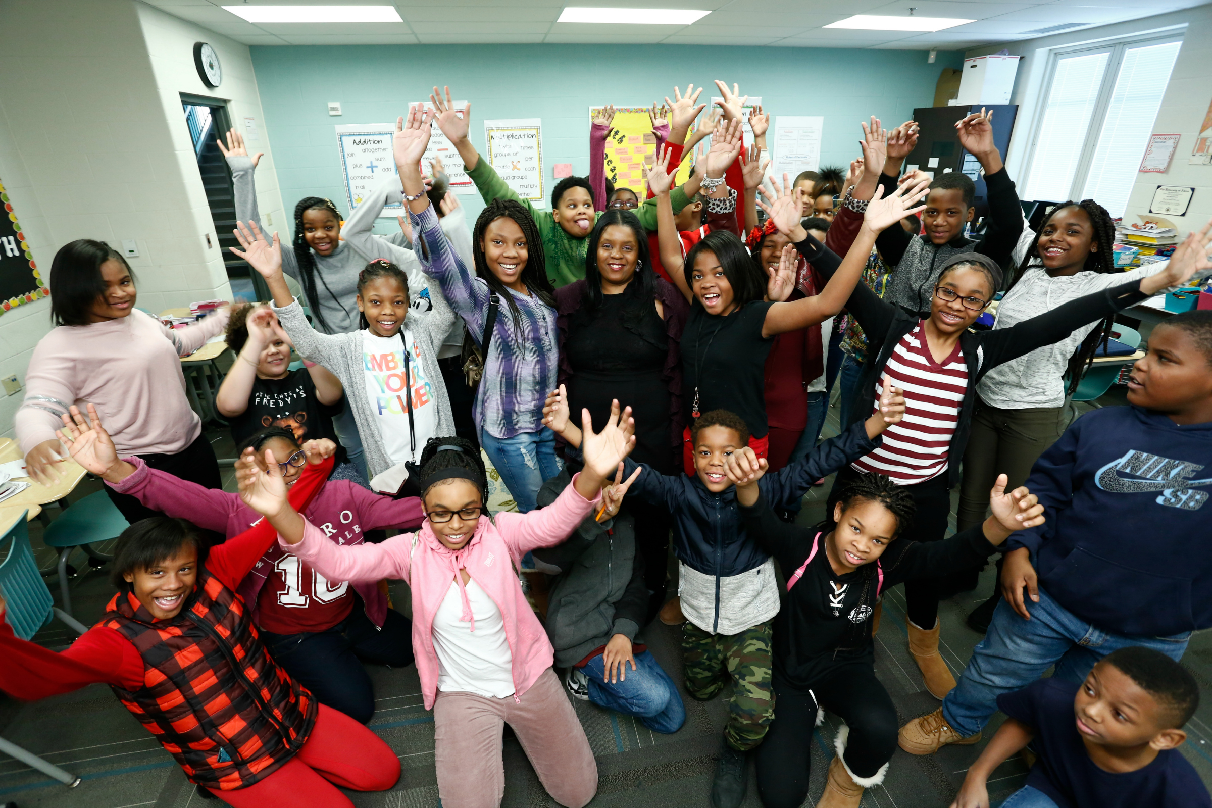 Milkovich Middle School | Maple Heights, OH | Jan 10, 2018Excited students celebrate their beloved math teacher Maria Rodgers after her surprise Milken Educator Award notification. Rodgers leaves an indelible mark on her students. Each year, the district’s top 20 graduating seniors honor their most influential teachers; though most name high school educators, Rodgers is regularly included on the list.