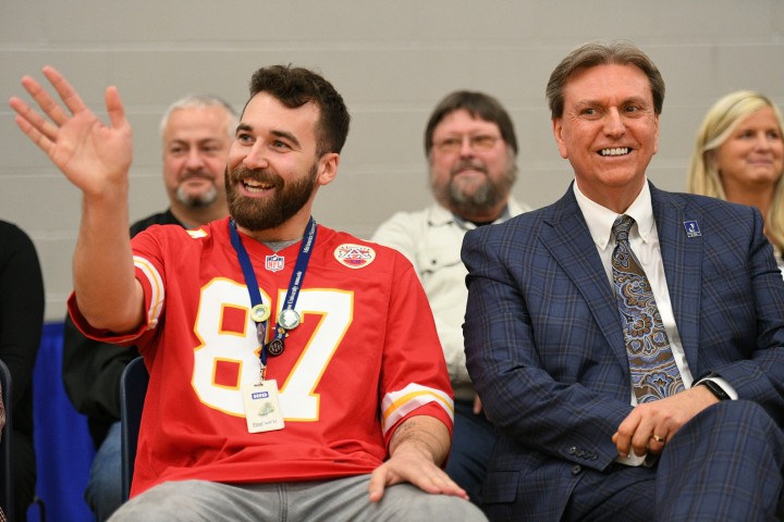 Gardner Edgerton High School | Gardner, KS | Feb 08, 2024With Kansas Commissioner of Education Dr. Randy Watson by his side, Milken Educator Award recipient catches his breath as the assembly continues.