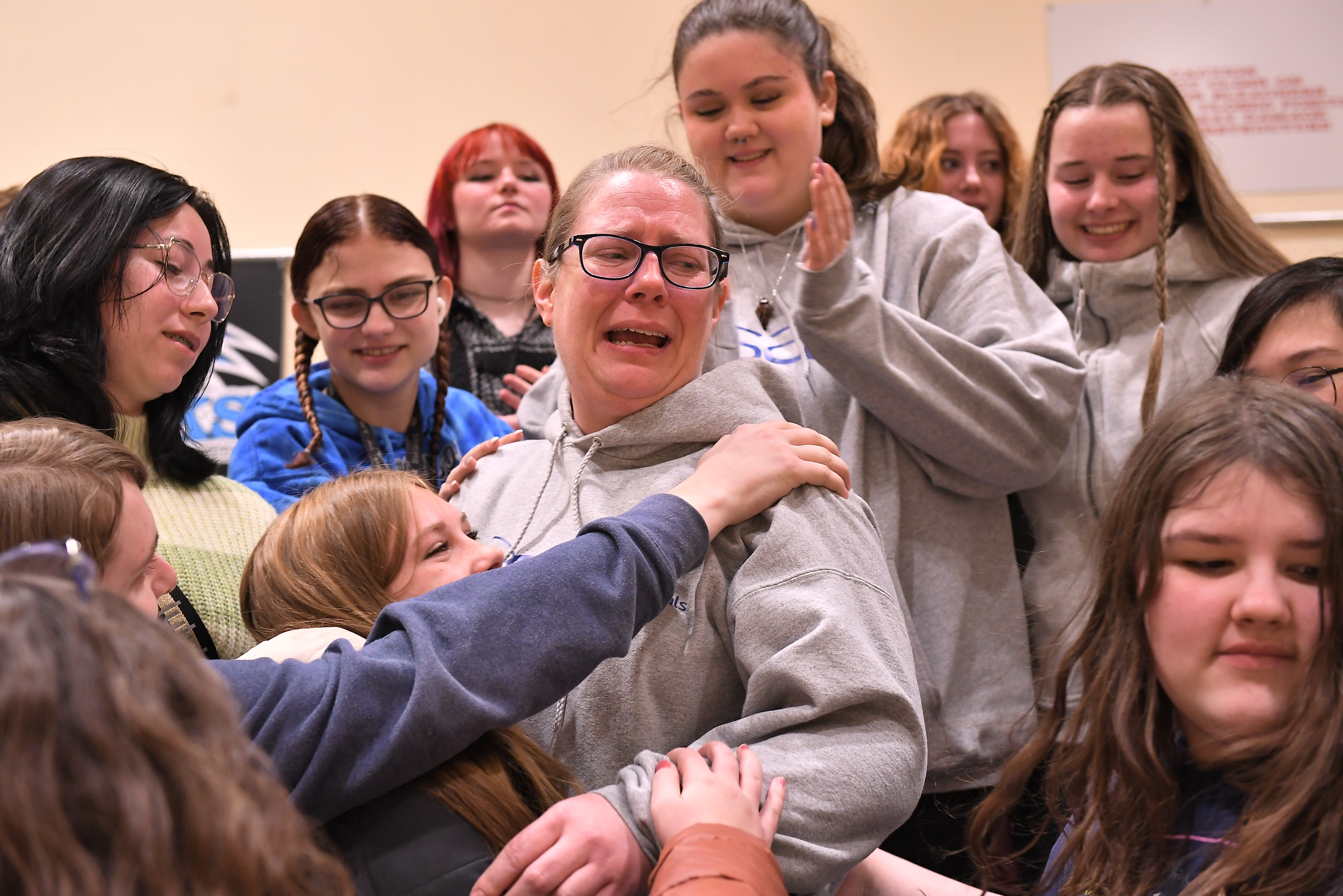 Hutchison High School | Fairbanks, AK | Jan 30, 2024The group hugs from Hutchison High School students continue. It's a great day to be a Hawk!