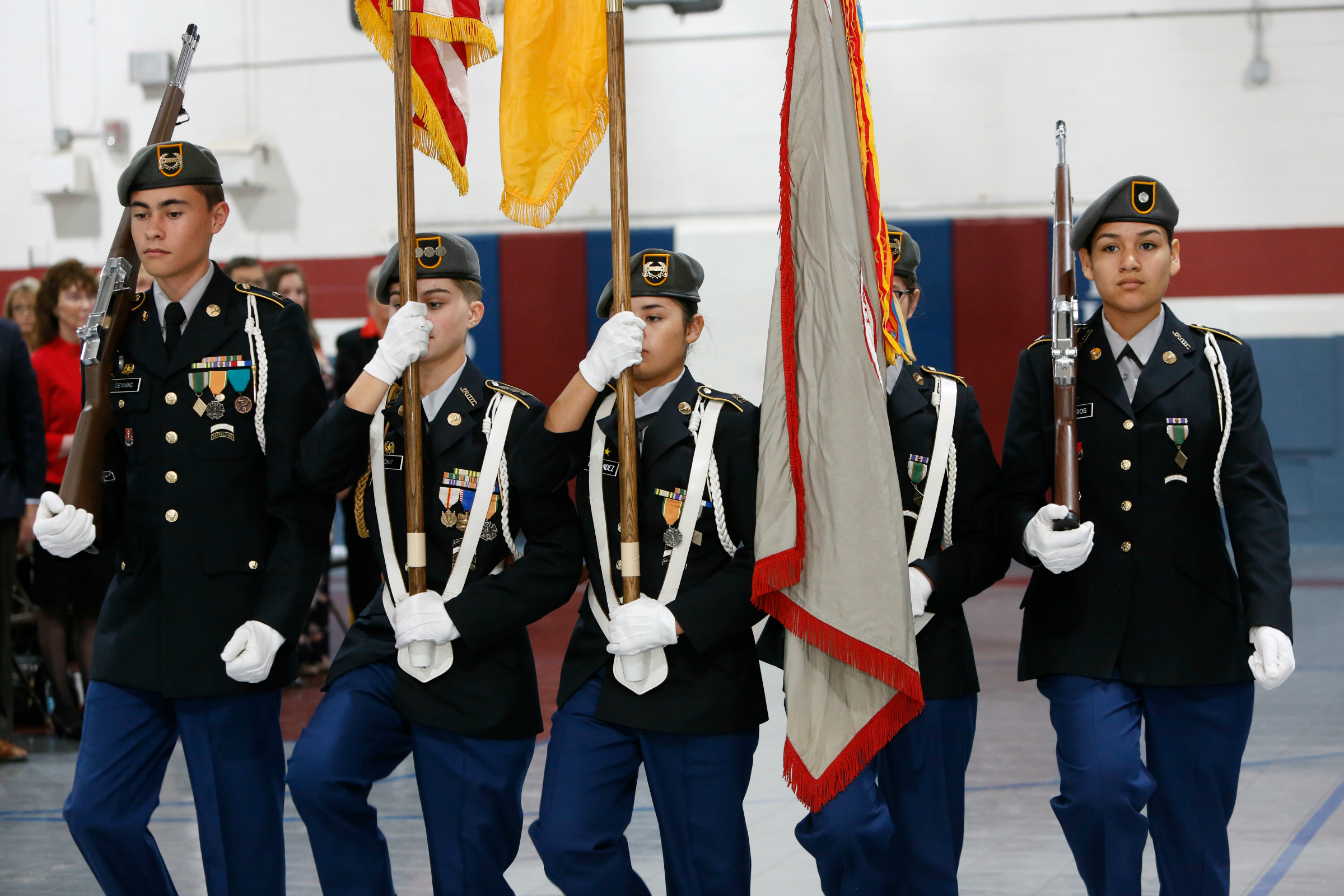 Deming Intermediate School | Deming, NM | Nov 30, 2017The Reserve Officer Training Corps (ROTC) honor guard performs a series of drills for the audience.