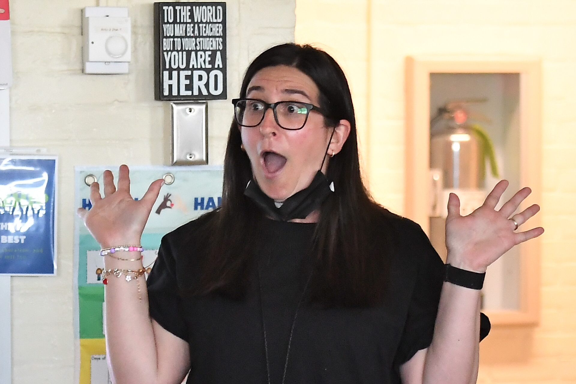 Prettyboy Elementary School | Freeland, MD | May 17, 2022Melissa Salkeld shows her students what it means to be shocked as they talk about the moment she learned she had won the Milken Educator Award.