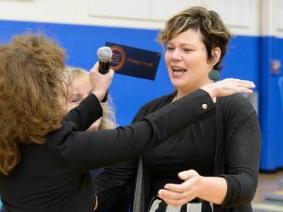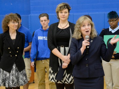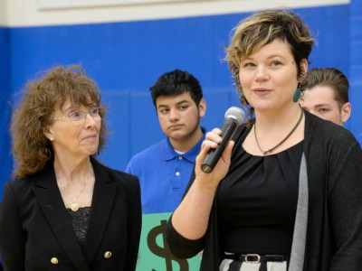 Shortridge High School | Indianapolis, IN | Nov 23, 2015Dr. Jane Foley, senior vice president of the Milken Educator Awards, lets the students, staff and guests at the morning assembly in on a secret: One outstanding educator at Shortridge High School is about to receive a national award with a large cash prize.