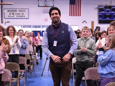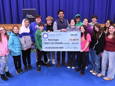 It's a big morning at Bath Middle School: officials from the Maine Department of Education are visiting for an all-school assembly. What’s the reason for the celebration? All becomes clear when Greg Gallagher, senior program director for the Milken Family Foundation, takes the mic and names seventh grade science teacher Micah Depper the recipient of Maine’s sole 2024-25 Milken Educator Award and $25,000. Relive Depper's career-changing day in the photos below.