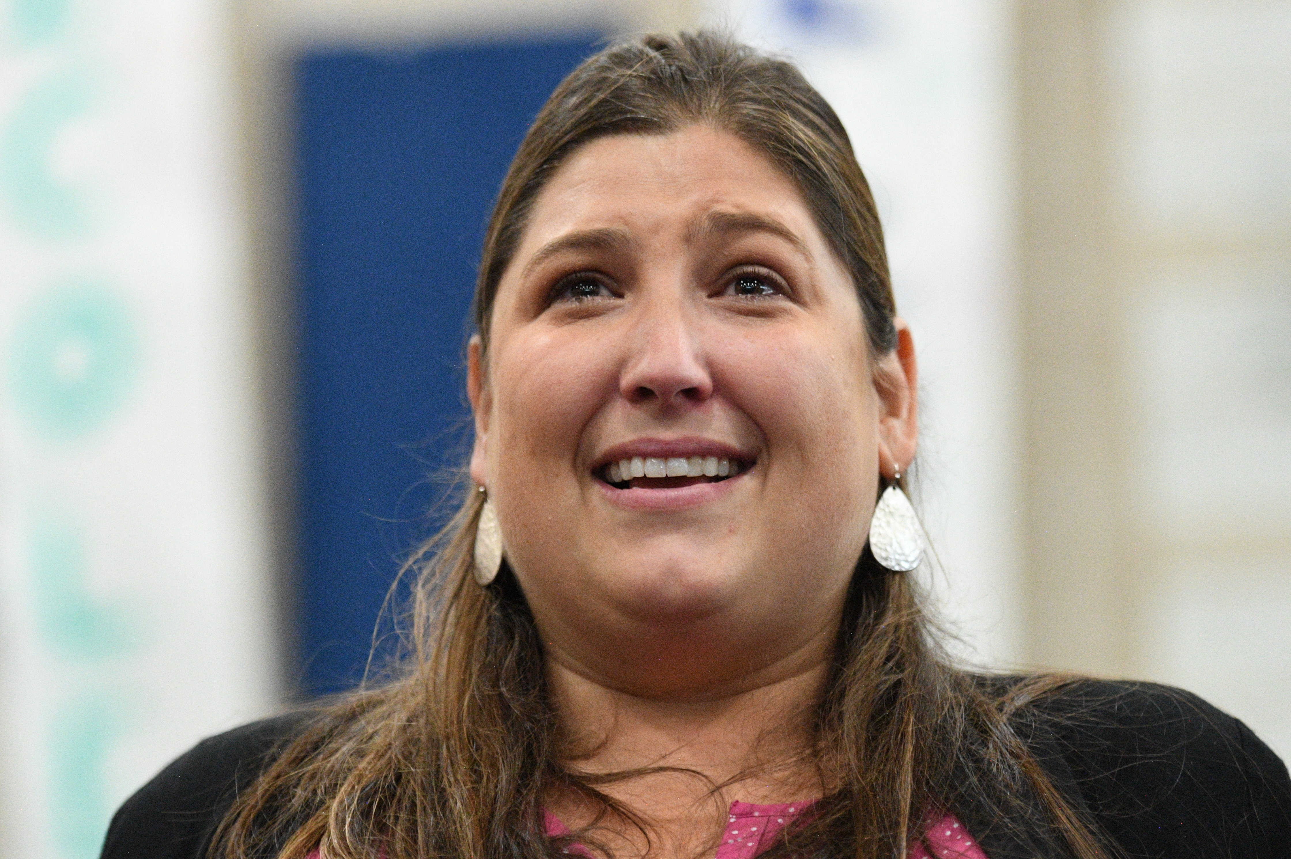 Plymouth North High School | Plymouth, MA | Oct 20, 2023Shocked and overwhelmed with emotion, ELA teacher and new Milken Educator Shelley Terry stands at the front of the assembly as the crowded gym honors her with a standing ovation. Terry has worked at Plymouth North High School for 17 years, teaching broadcast journalism with the Plymouth North News crew, on top of teaching numerous multi-level English courses. Beyond her classroom, she is the school's ELA Department Head, advisor to the school newspaper and other clubs, and mentor to other teachers.