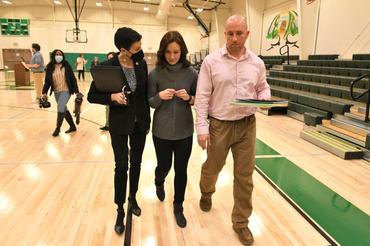 East Hardy High School | Baker, WV | Feb 16, 2022As the assembly comes to an end, Milken Educator Awards Vice President Stephanie Bishop shares more details about the Milken Educator Award with recipient Michelle Wolfe and her husband Randall, a math teacher at East Hardy High.