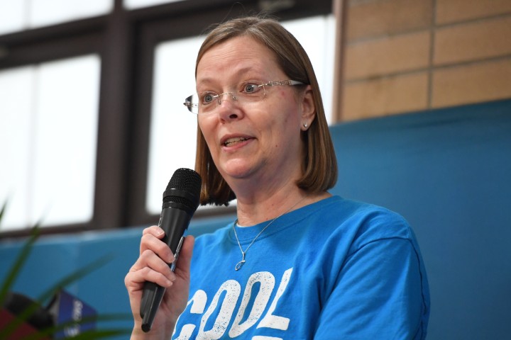 Steere Farm Elementary | Pascoag, RI | Mar 29, 2022Let's get rolling! Steere Farm Elementary Principal Dr. Janet Lyons kicks off the morning assembly.