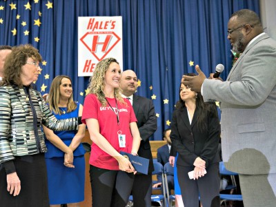 Nathan Hale Elementary School | Carteret, NJ | Dec 07, 2018Dr. Jane Foley, senior vice president of the Milken Educator Awards, tells the assembly that educators are too seldom recognized and honored for their efforts. That's why, more than 30 years ago, the Milken Family Foundation created a special honor just for outstanding teachers and principals.
