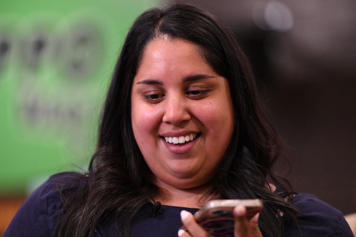 Surrounded by dignitaries, veteran Milken Educators, and media, Olivia Joseph calls her sister to share the good news: she has just been honored with a Milken Educator Award and $25,000.