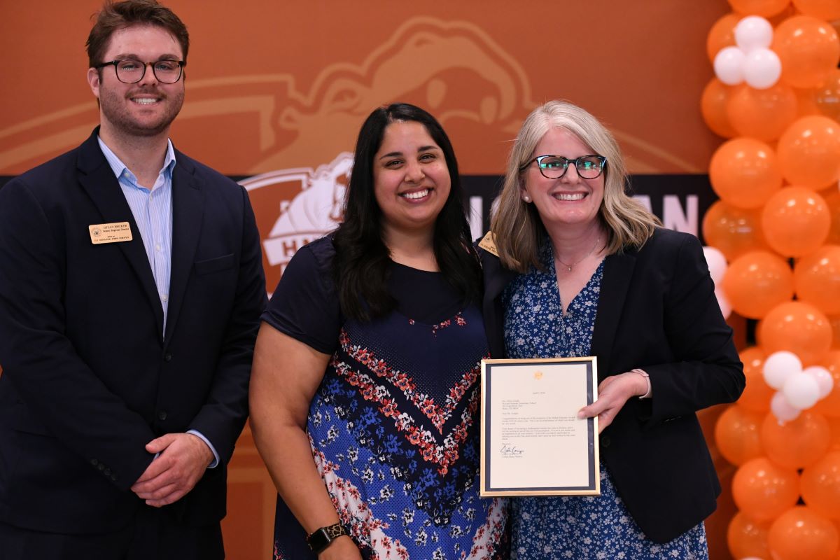 Howard Norman Elementary School | Hutto, TX | Apr 07, 2026Olivia Joseph is congratulated by Central Texas Deputy Regional Director Dylan Bricker and Senator John Cornyn's Central Texas Regional Director Jill Wyman.