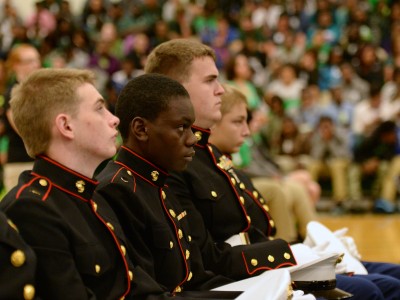 Plaquemine High School | Plaquemine, LA | Oct 28, 2015Chandler Smith, principal of Plaquemine High School and Louisiana's newest Milken Educator Award winner, shares his exciting moment with veteran Milken Educators from years past. From left, Dr. Amanda Mayeaux (LA '03), visiting assistant professor at University of Louisiana at Lafayette; recipient Chandler Smith (LA '15); Vicky Condalary (LA '01), National Institute for Excellence in Teaching senior program specialist; and Dr. Gary Stark (AR '01), president and CEO of the National Institute for Excellence in Teaching. Condalary tells Smith, "When [Lowell Milken] found me in 2001, it was the start of something great, not only for me, but also for my colleagues."