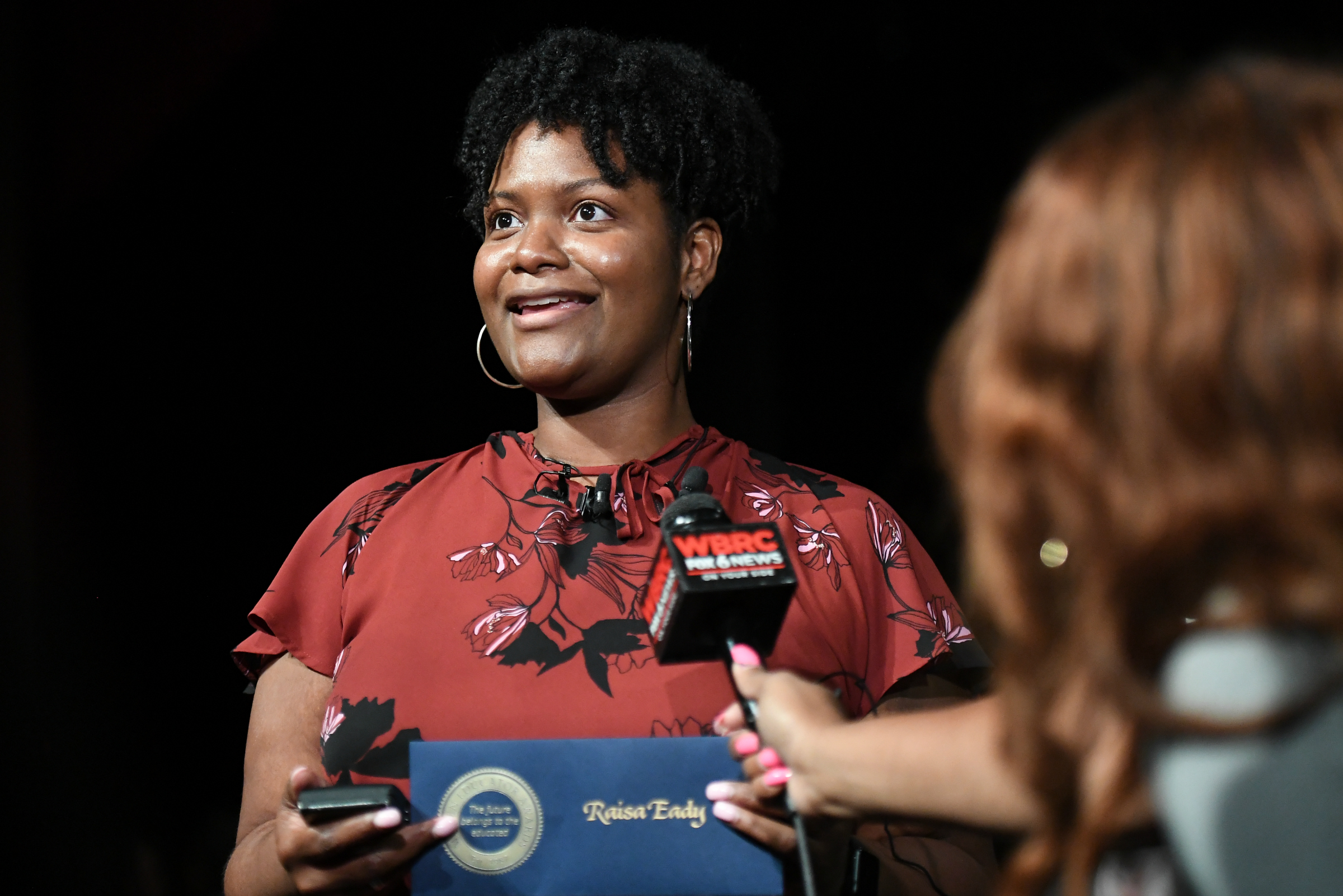 Pinson Valley High School | Pinson, AL | Oct 09, 2019Raisa Eady talks with reporters after her surprise Milken Educator Award notification. Eady is working to build a robust AP Biology program at Pinson Valley; the number of students taking the course and AP exam has increased over the past three years.