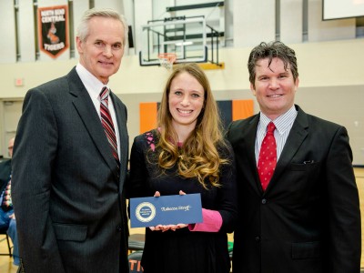North Bend Central Elementary | North Bend, NE | Mar 04, 2019The big news is starting to sink in for fifth-grade teacher Becky Streff: She is now a Milken Educator, and she's taking home an unexpected $25,000! Nebraska Department of Education Commissioner Matthew L. Blomstedt (left) and Lieutenant Governor Mike Foley (center) look on with delight and pride.