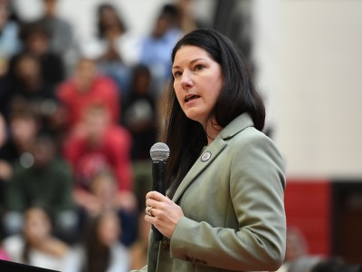 Cinnaminson High School | Cinnaminson, NJ | Oct 11, 2023Unaware of the events that lie ahead, Cinnaminson High School math teacher Riley Gartland watches as students settle in and find their seats for the assembly. Ms. Gartland has no idea why exactly so many special guests are here at school today.