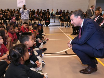 Paul Habans Charter School | New Orleans, LA | Nov 13, 2019It's time to get this assembly underway! Paul Habans Charter School Principal Elisabeth LaMotte-Mitchell calls the special event to order.