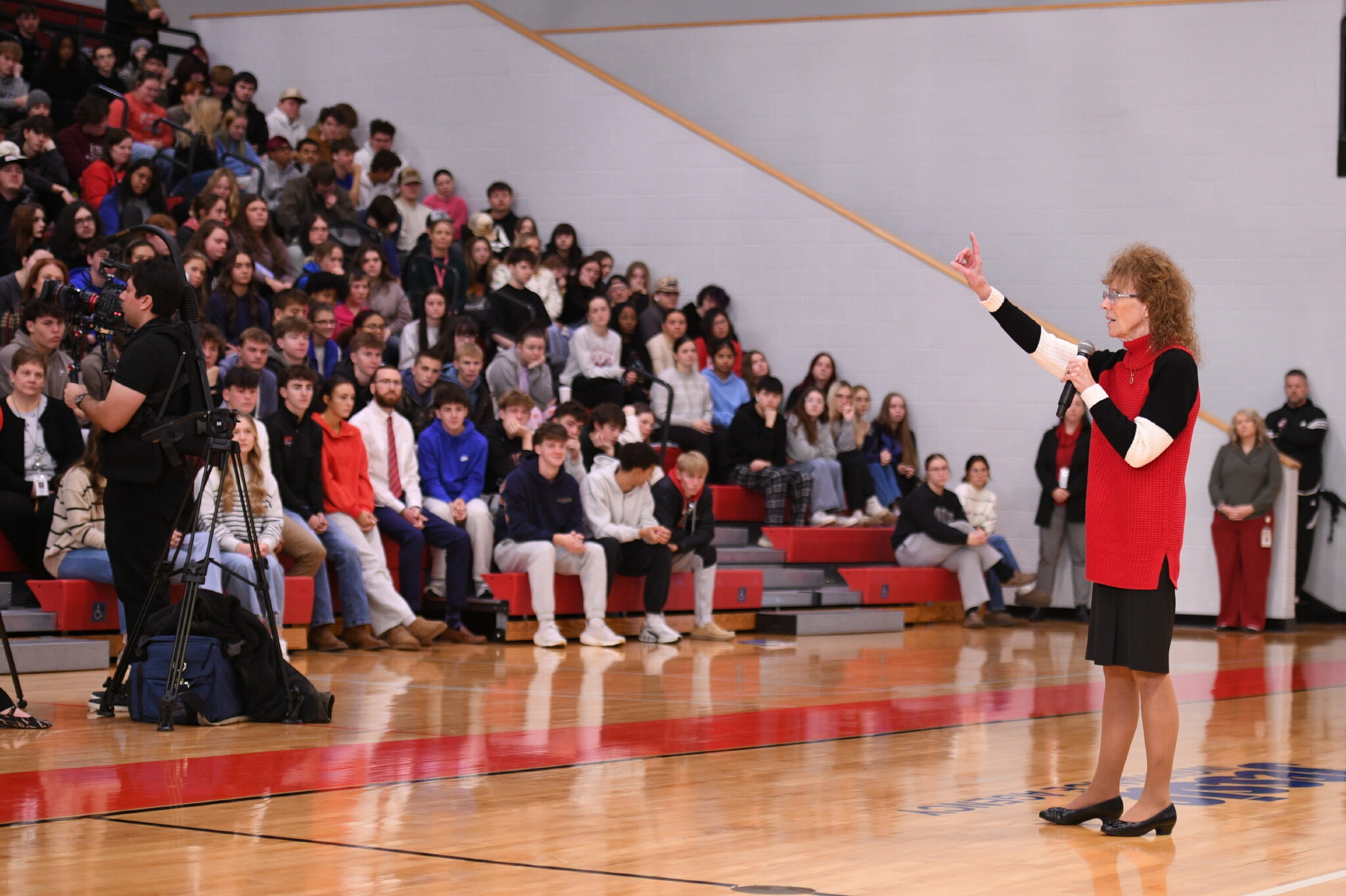 Taylor County High School | Campbellsville, KY | Dec 16, 2025Dr. Jane Foley, senior vice president of the Milken Educator Awards, tells the assembly that one of the best teachers in the country is right here at Taylor County High School. Then, Dr. Foley reveals a secret: that teacher is about to receive a Milken Educator Award!