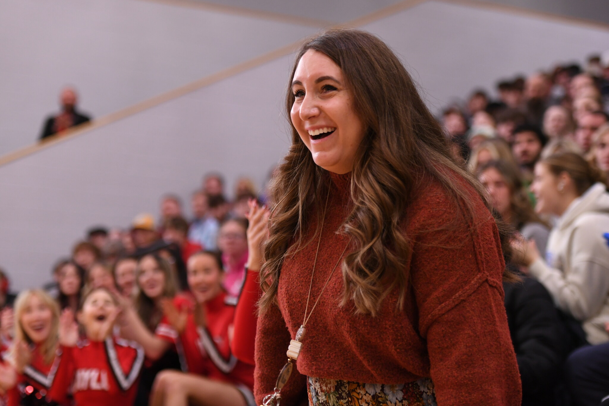It all starts to sink in for Milken Educator Award recipient Sydney Newton ... today's assembly is actually all for her!