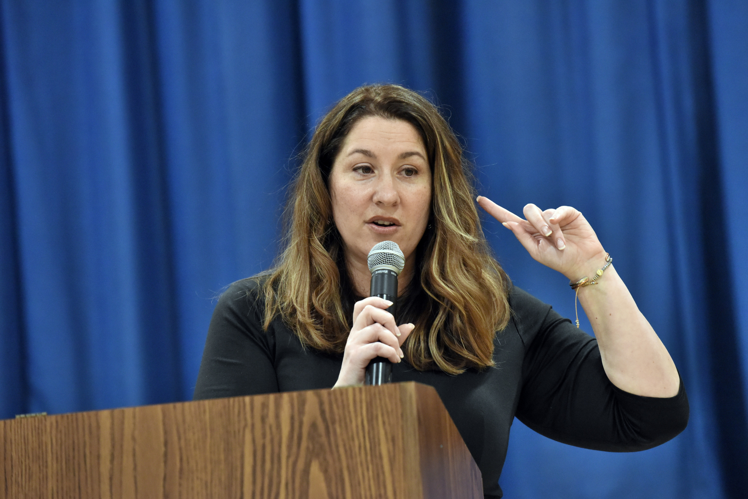 Laura Donovan Elementary | Freehold, NJ | Apr 01, 2022Time to begin! Laura Donovan Elementary School Principal Jenn Benbrook kicks off the morning assembly.