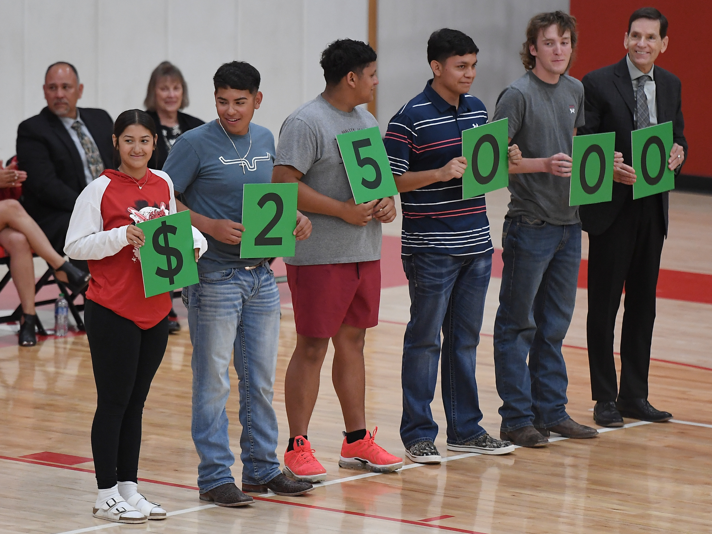 Loving High School | Loving, NM | Apr 19, 2022How much is the Milken Educator Award's cash prize? Students hold up cards representing the amount. When New Mexico Secretary of Education Dr. Kurt A. Steinhaus holds up a third zero, everyone is amazed: $25,000!