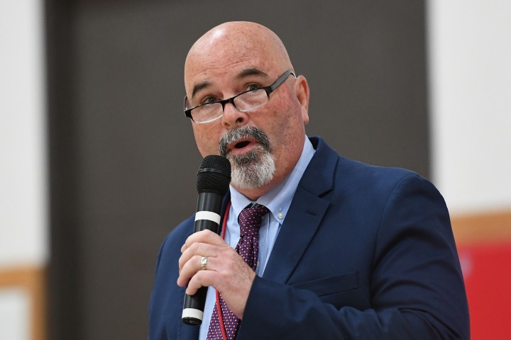 Loving High School | Loving, NM | Apr 19, 2022Loving Municipal Schools Superintendent Lee White greets the students, staff and guests gathered in the gym.